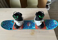 Prodám dětský snowboardový komplet Burton. Snowboard 90 cm, boty 28 Eur vč. vložek pro možnost budoucí zvětšení velikosti. Vše v zánovním a nepoškozeném stavu. Možná demontáž vázání a prkno používat jako tzv. noboard, pro tahání dítěte např na provázku apod., díky nášlapným paddům. Jedná se o jeden s nejlepších dětských setů na truhu pro začínající snowboarďáky. Dítě zvládne jednoduše vše samo. ...
