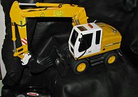 ovládaná jízda vpřed-vzad a otáčení bagru, lopata je ručně ovládaná
