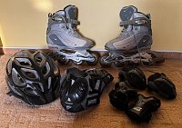 Prodám kolečkové brusle NIKE vel. 36,5. Použité, ale v moc pěkném stavu (jedná přezka odřená). K tomu přidám 2sady chráničů kolen, loktů a dlaní (menší a větší)
