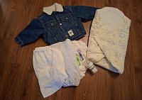 Prodam vse na fotce= zateplena rychlozavinovacka pro mimco, 3x frote prosteradlo do postylky, nepouzitou lahvicku Avent, 2x prvni lzicku+ riflovou bundicku s umelou kozesinou jako podsivka. Cena za vse. Osobni odber. ...