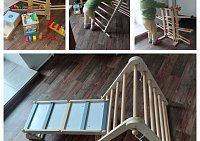 Prodám dětské dřevěné hřiště. Sada obsahuje: Piklerův motorický trojúhelník, malý trojúhelníkový držák, oboustrannou desku s funkcí lezení a žebříku. Rozměry jsou vhodné do bytu. Máme to doma asi rok, je to plně funkční, pěkné, nezničené. Trojúhelníkový žebřík lze nastavit třemi způsoby: vysokým trojúhelníkem, nízkým trojúhelníkem a naplocho.