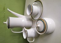 Prodám kávovou soupravu Zn.Bohemia,kompl., nepoškozená, hrníček s podšálkem 6ks( foceno pouze 1 ks).Cena 600,-Kč ...